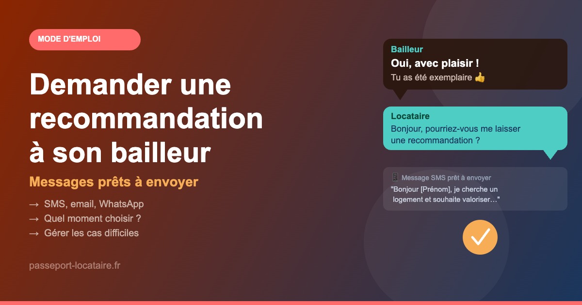 Exemple : « Merci pour cette bonne relation locative. Je suis actuellement en recherche d’un nouvel appartement — est-ce que vous seriez d’accord pour m’écrire un mot de recommandation si un propriétaire vous contacte ? »